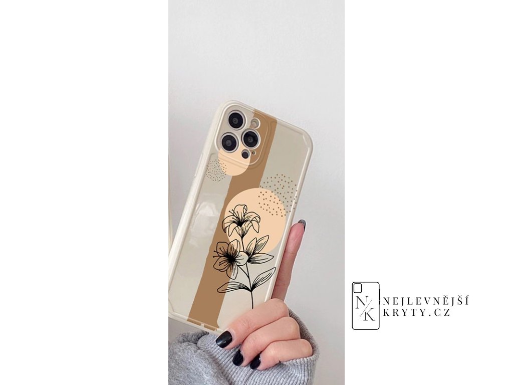 Béžový Obal a kryt na iPhone s motivem květin. Pouzdro pro efektivní ochranu Vašeho telefonu. Originální designe s vystouplými okraji pro dokonalou ochranu Vašeho telefonu.